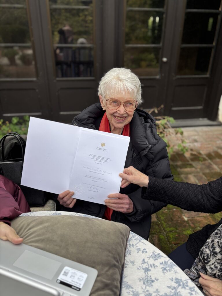 Die international renommierte Evolutions- und Kulturtheoretikerin Riane Eisler wurde mit dem Österreichischen Ehrenkreuz für Wissenschaft und Kunst I. Klasse ausgezeichnet. Generalkonsulin Christine Moser von der österreichischen Botschaft Los Angele überreichte am 3. Dezember 2025 feierlich Prof. Riane Eisler das Österreichische Ehrenkreuz für Wissenschaft und Kunst. Die Zeremonie fand im kleinen familiären Rahmen bei Riane Eisler statt, ein paar internationale Gäste waren online zugeschalten.